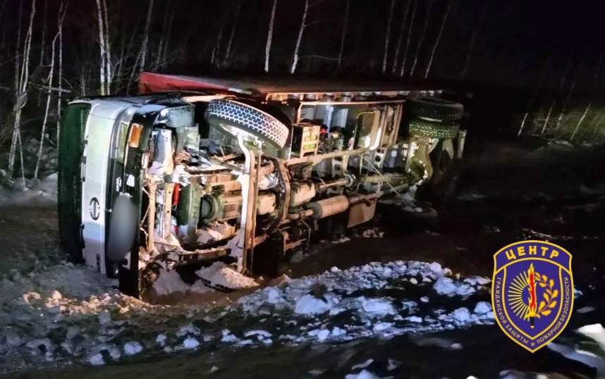 В поселке Февральск водитель грузового фургона не справился с управлением и съехал в кювет. Мужчина с питомцем оказались заблокированы и начали замерзать. На место ДТП прибыли спасатели.