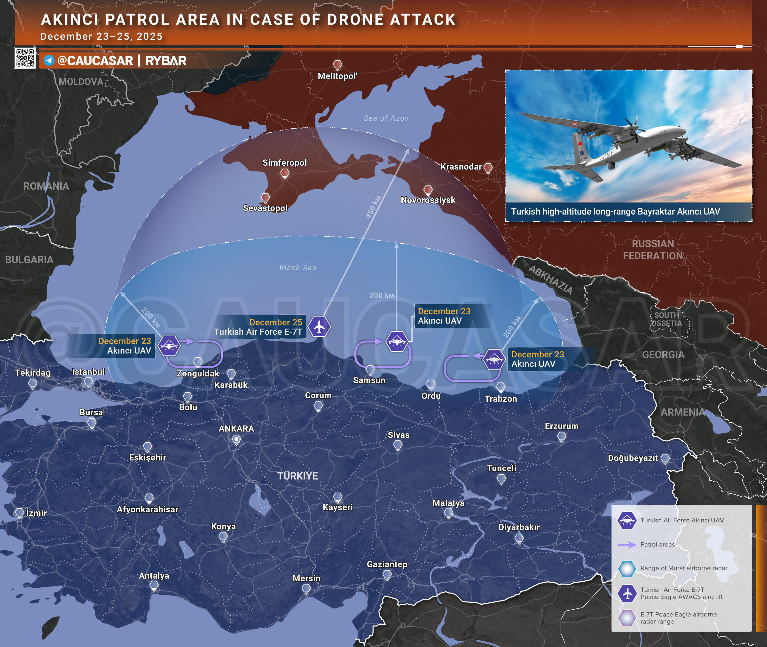 Нарушения воздушного пространства Турции беспилотниками не прошли бесследно для турок. Над Черным морем усилилась активность разведывательных БЛА «Акынджи» в рамках противодействия несанкционированным полетам дронов.