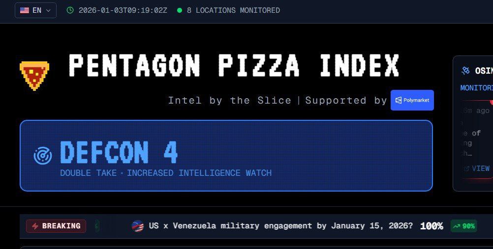 Перед ударом по Венесуэле зафиксирован рост так называемого «индекса пиццы» в районе Пентагона.