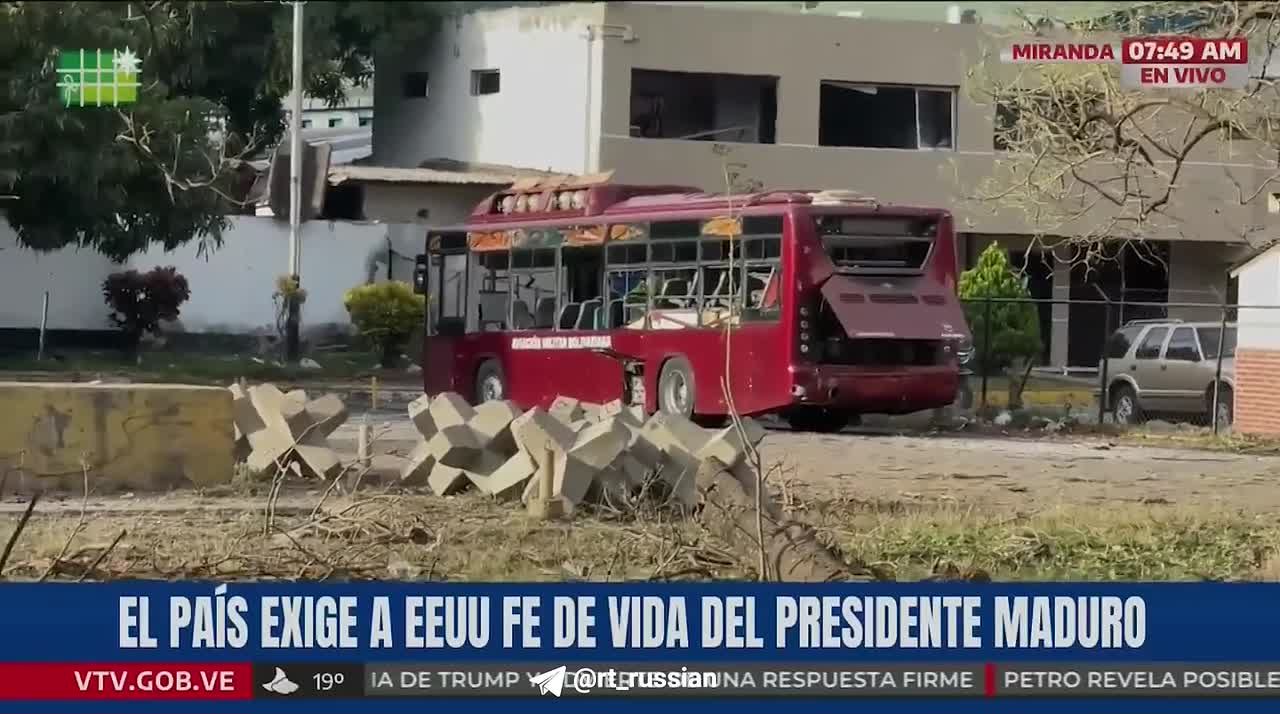 На видео последствия ударов США — сгоревшая техника, автобусы и повреждённые ограждения на авиабазе в Каракасе.