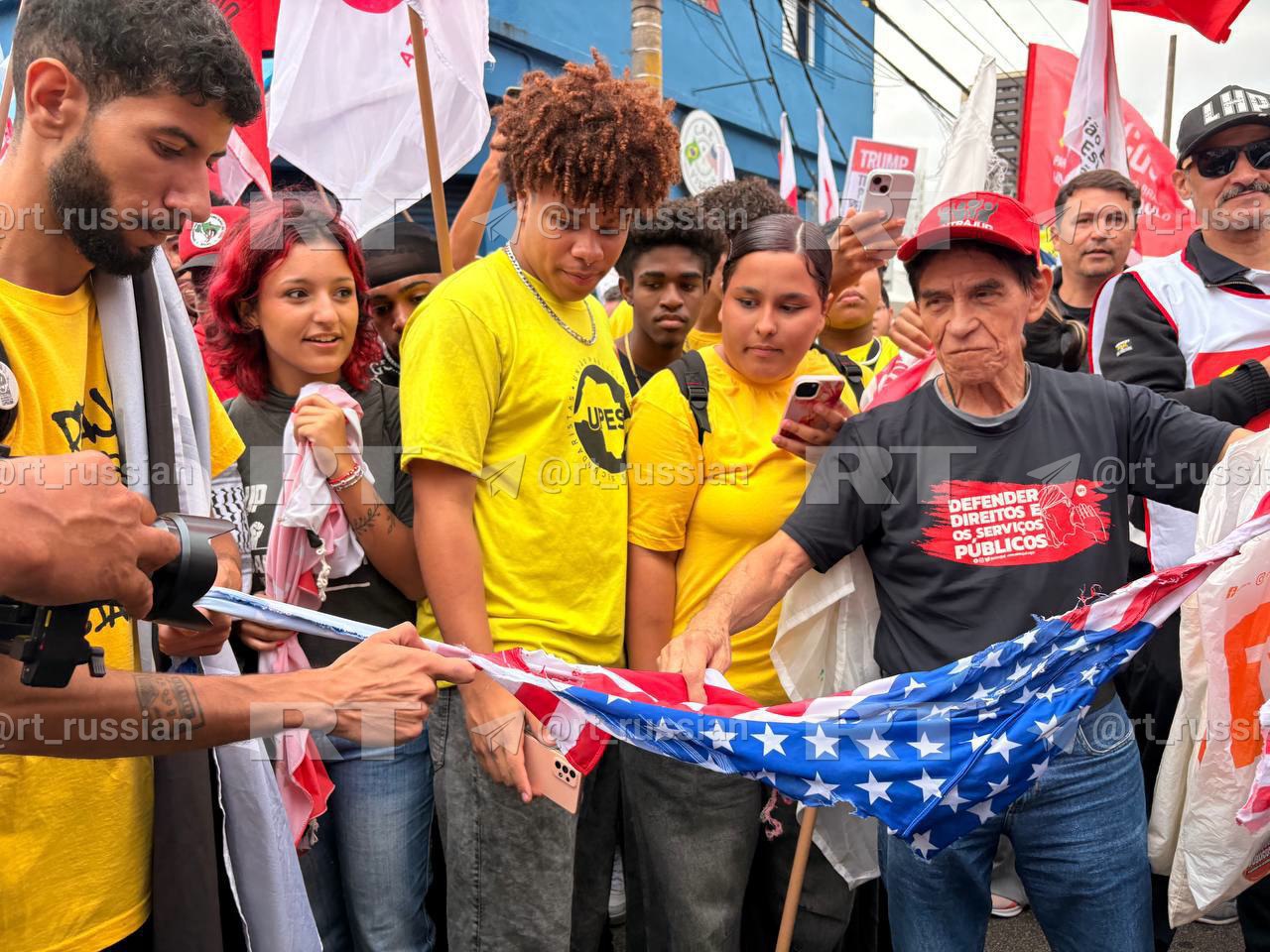 В бразильском Сан-Паулу перед американским консульством растоптали и сожгли флаги США