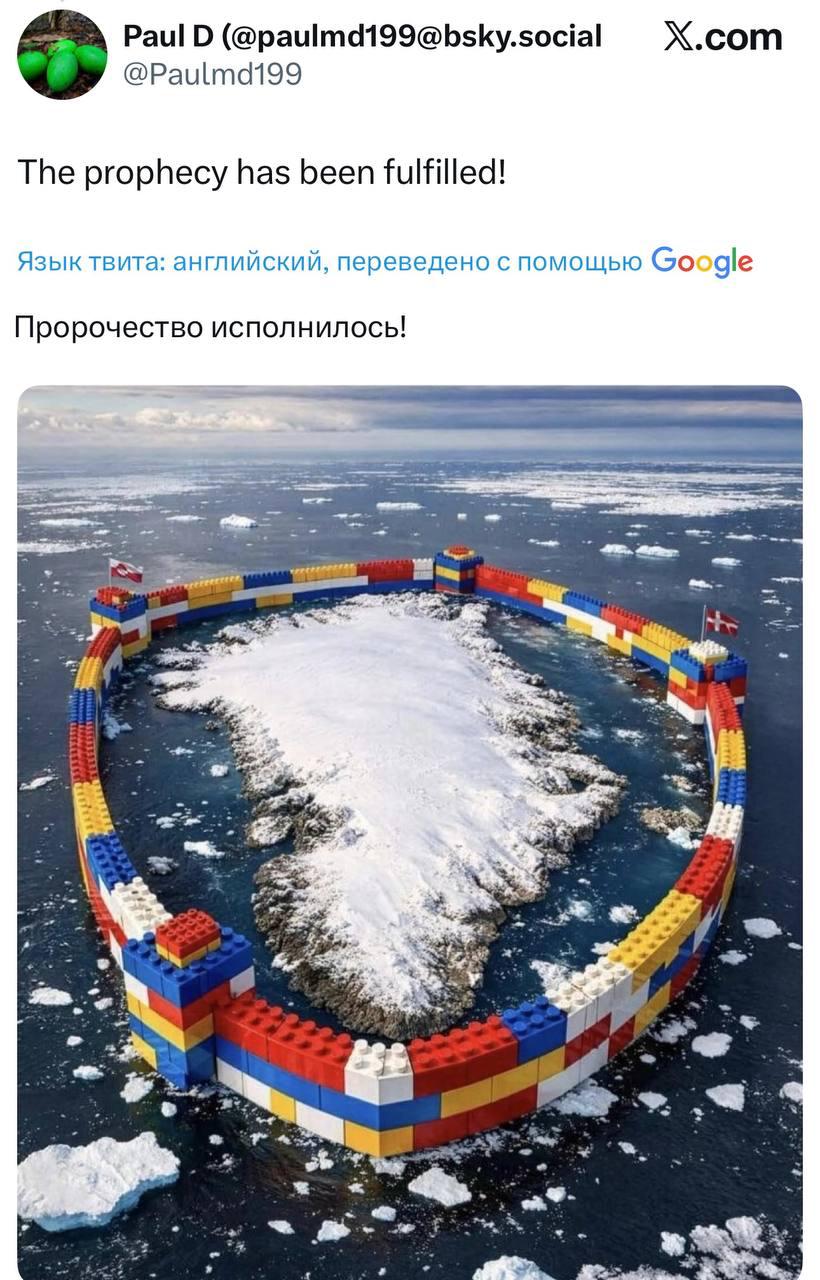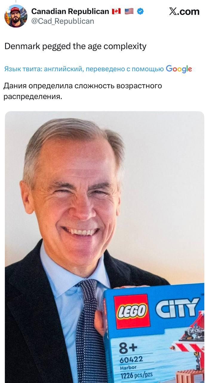 Пост с конструктором канадец Марк Карни опубликовал в соцсети X и написал про солидарность с Копенгагеном.