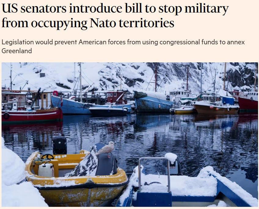 Сенаторы внесли законопроект, запрещающий армии США оккупировать территории НАТО, включая Гренландию.