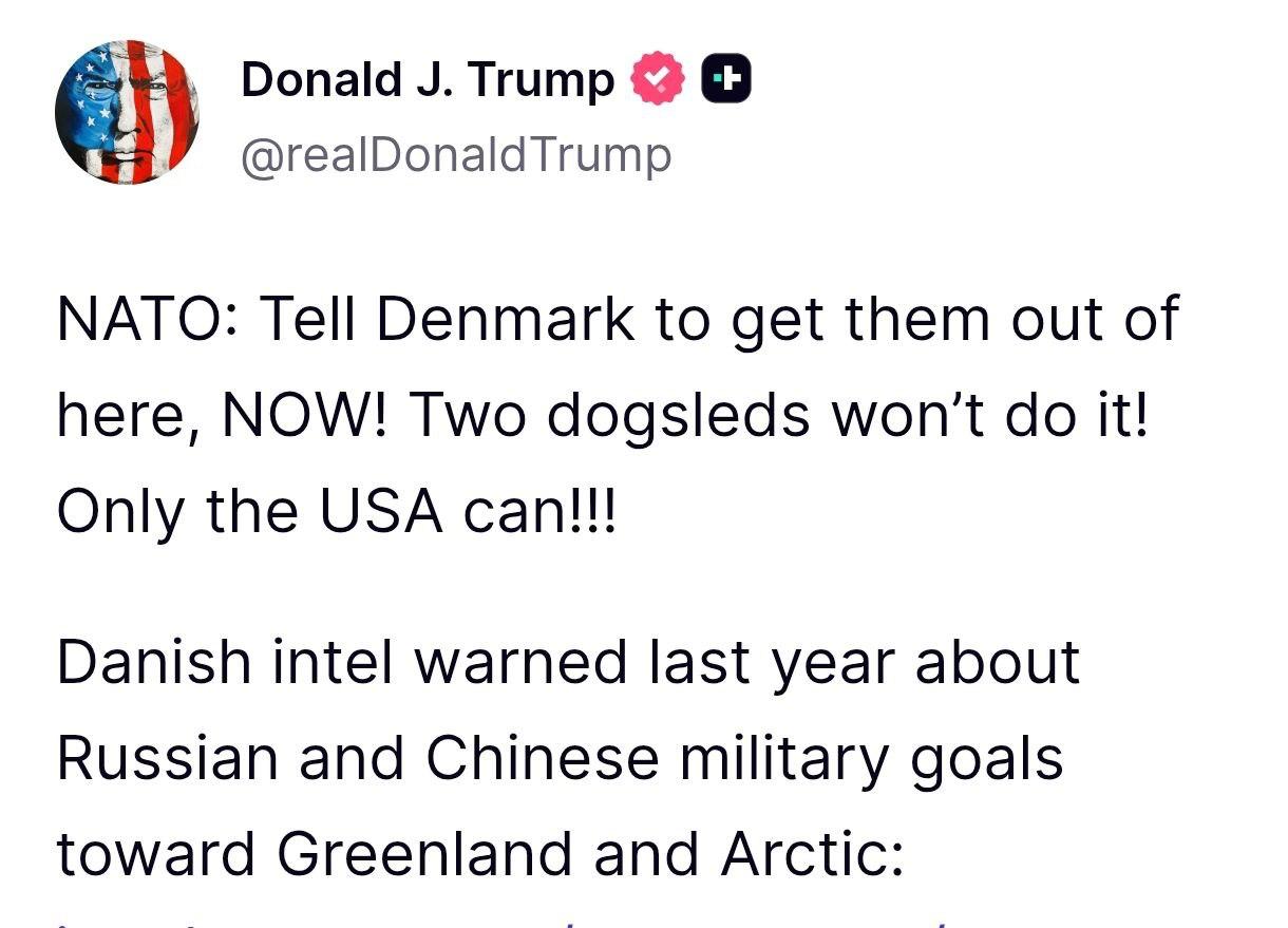 "Трамп думает, что всё и всех можно купить , но высказывая эту мысль всё более чётко, он настраивает гренландцев против потенциального союза с США", — пишет...