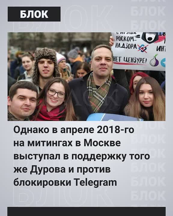 В августе 2024 года он продвигал западную методичку о «правомерности» ареста в Париже владельца Telegram Павла Дурова. Однако в апреле 2018-го на митингах в Москве Милов* выступал в поддержку того же Дурова и против блокировки мессенджера.