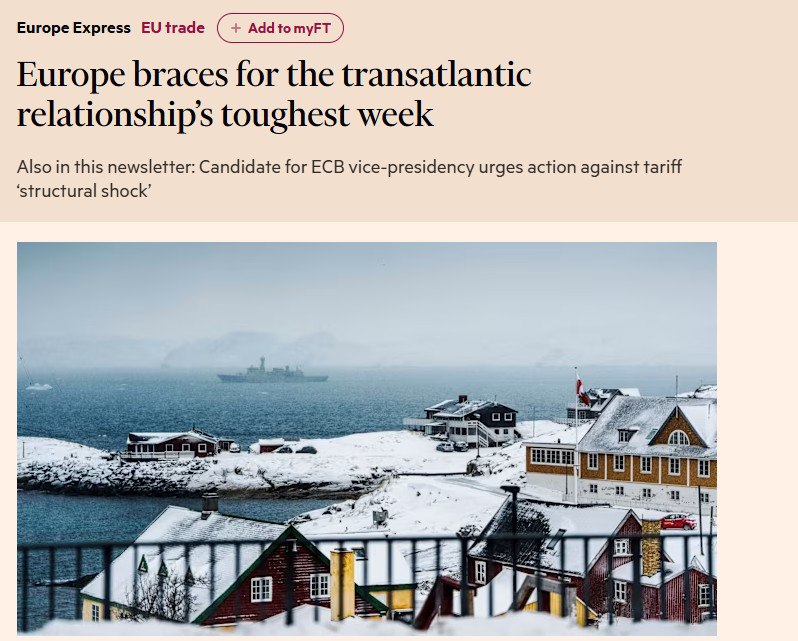 Financial Times: 'Лидеры ЕС и их делегации, которые сегодня должны встретиться с Трампом и официальными лицами США на Всемирном экономическом форуме в Давосе, разрывают свои аналитические записки по Украине и заменяют их тем, что один высокопоставленный дипломат ЕС назвал ‘кнутом и пряником’ — способами, которыми Брюссель может ответить на тарифы США из-за Гренландии. ‘Как можно садиться за стол переговоров с этим человеком и обсуждать его гарантии безопасности Украине? Ему нельзя доверять’ — сказал европейский дипломат’.