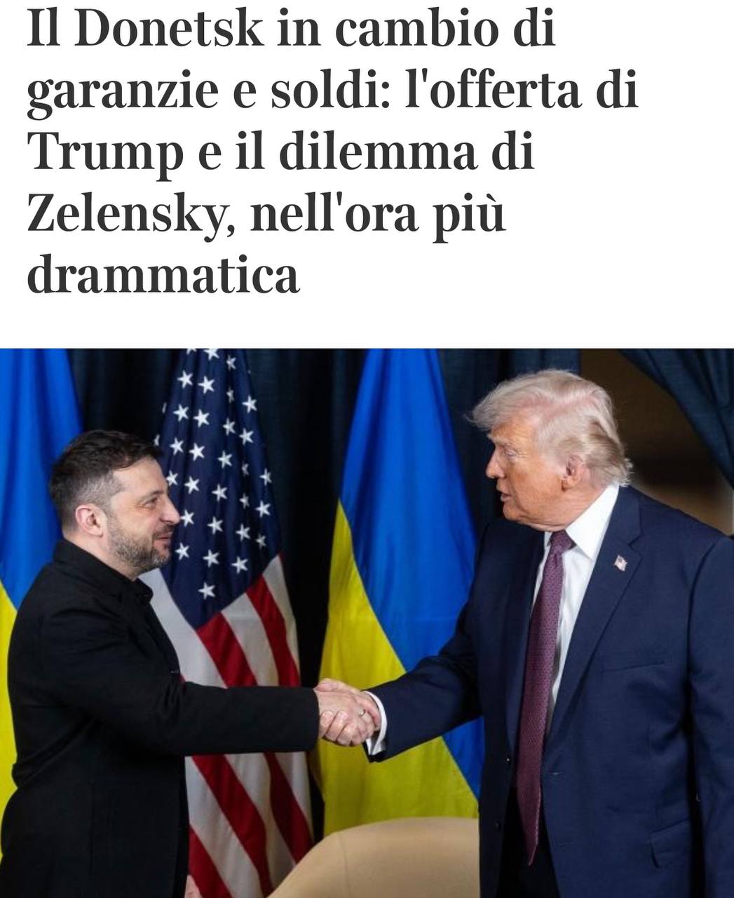 Зеленский должен будет уступить территорию в обмен на западные деньги и защиту, пишет итальянская газета Corriere della Sera