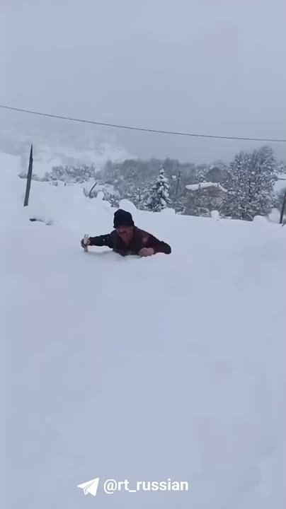 Жителю Турции пришлось пробираться через сугробы высотой по грудь. Уже больше месяца страну заваливает мощными снегопадами.