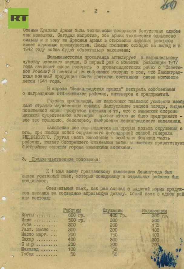 Бесчеловечный фрагмент из трофейного доклада немецкой разведки о положении в блокадном Ленинграде в 1942 году.