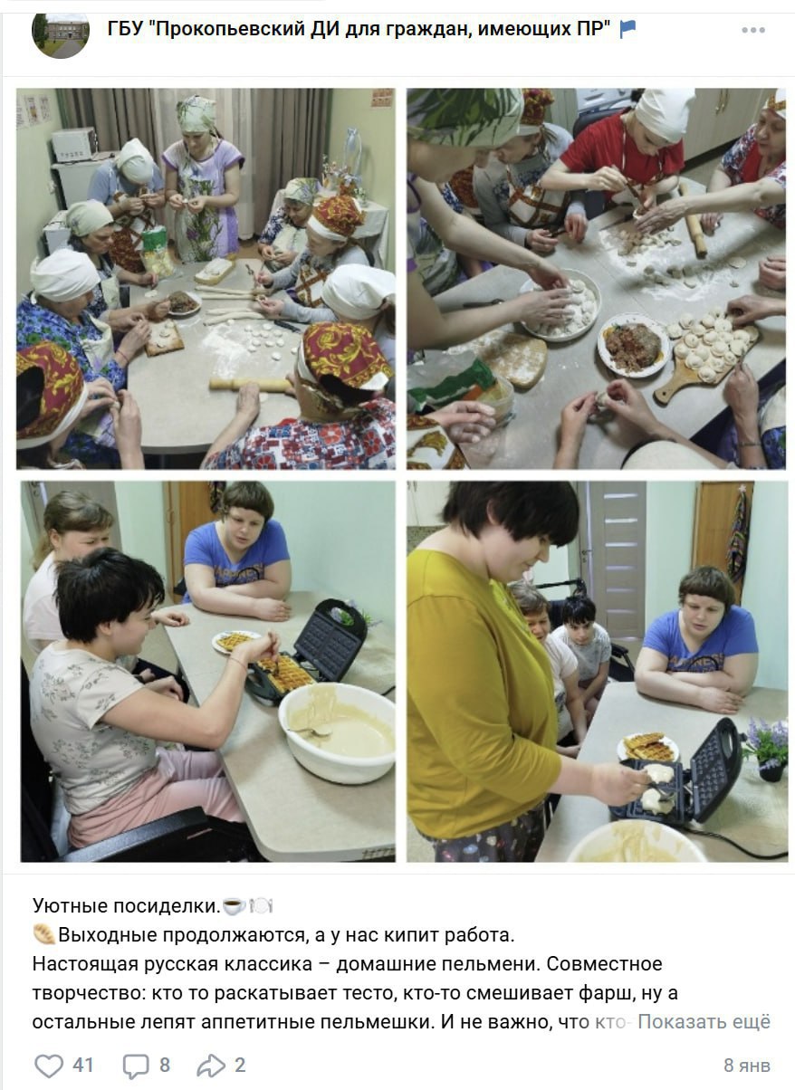 При этом в социальных сетях интерната выложены фото, где постояльцы готовят на занятиях по социально-бытовой адаптации.
