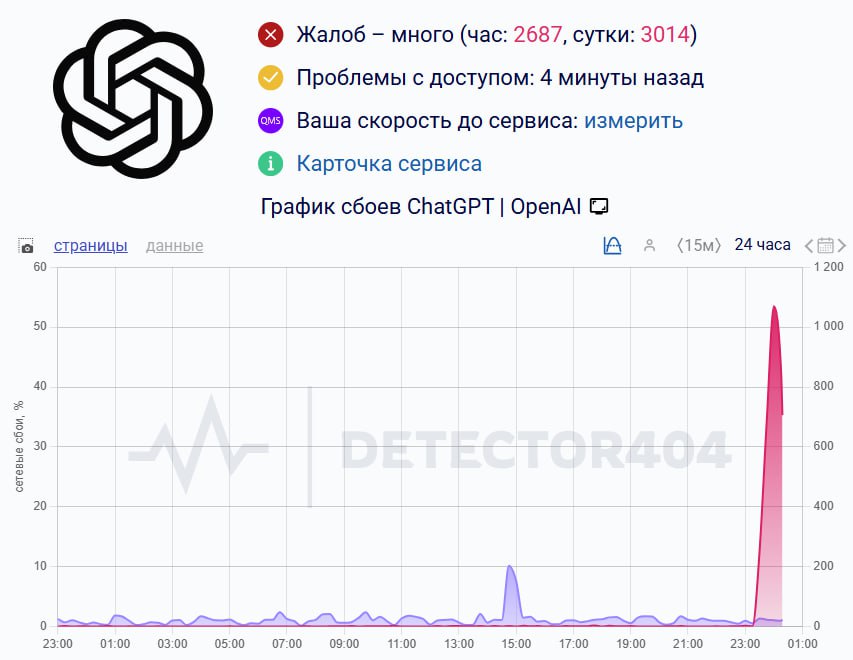 Пользователи по всему миру жалуются на сбои в работе ChatGPT