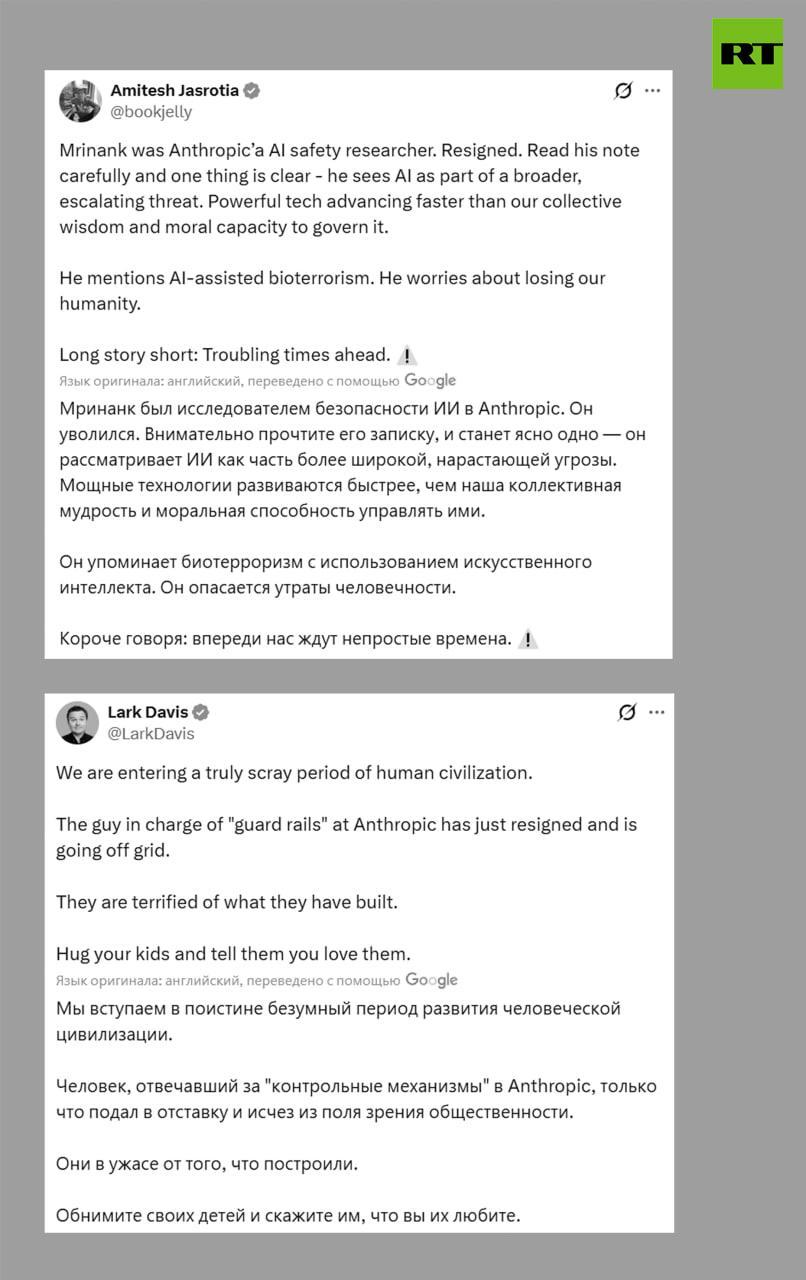Внезапный уход одного из ведущих исследователей ИИ из компании Anthropic со словами «Мир в опасности» встревожил людей — они готовятся к непростым временам.