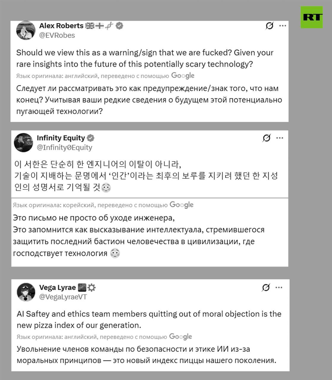 многих пользователей X, где Шарма разместил своё обращение, встревожили его слова. Люди в том числе пишут, что письмо запомнится как попытка «защитить последний бастион человечества в цивилизации, где господствует технология». Остальные комменты — на картинках.