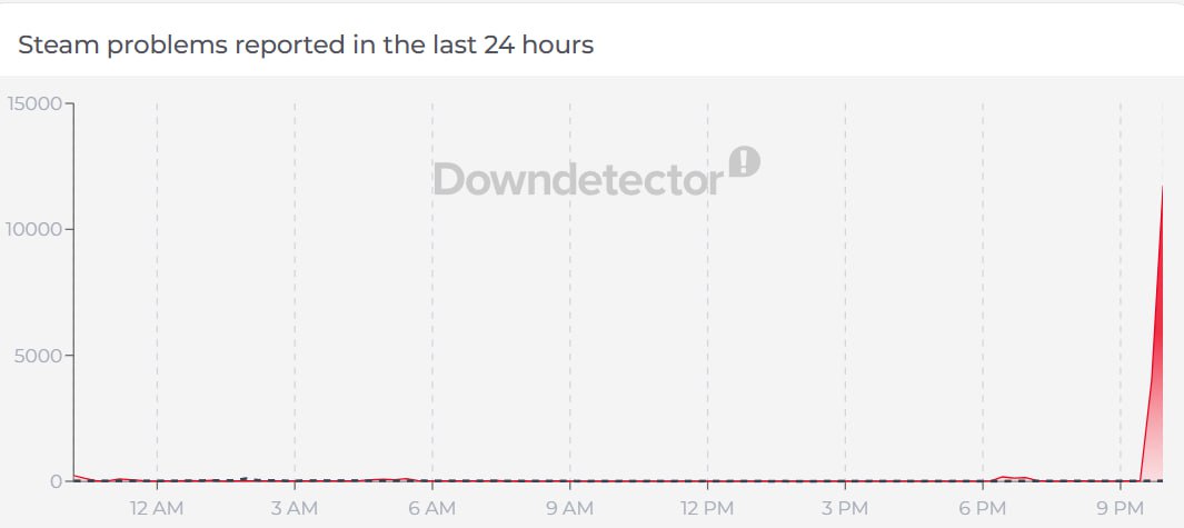 Сбой в работе Steam, следует из данных сервиса Downdetector.