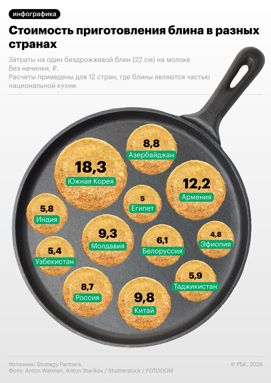 Сколько стоят блины в разных странах — в инфографике РБК.