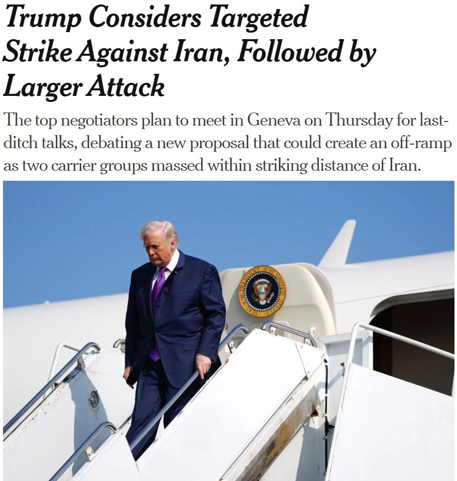Источники, знакомые с обсуждением, заявили: президент США допускает военное вторжение к концу года, если переговоры в Женеве не принесут результатов. Хотя окончательного решения пока нет, Трамп склоняется к превентивному удару в ближайшие дни.