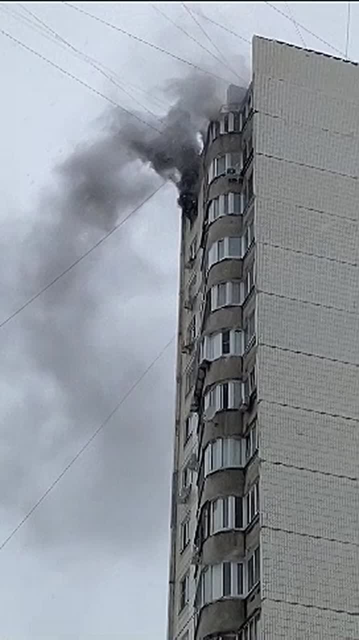 На кадрах видны столбы черного дыма, валящего прямо из окон. На место едут экстренные службы. Информации о пострадавших пока нет.