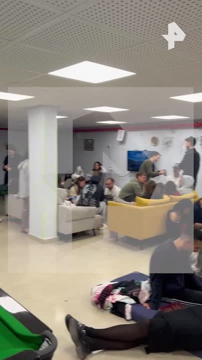 На кадрах РЕН ТВ — люди прячутся в одном из бомбоубежищ в подвале дома в Израиле