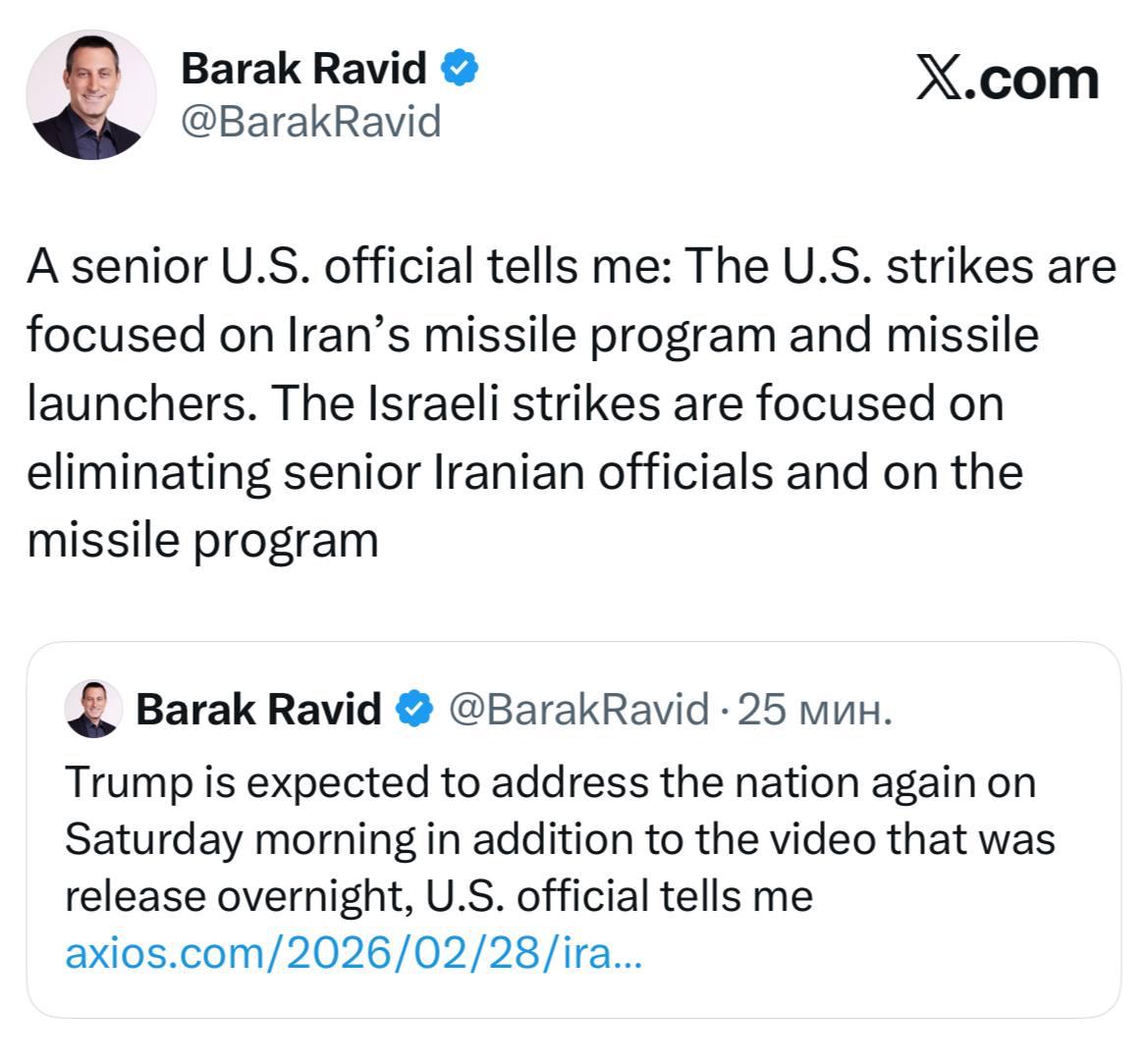 "Израильские удары – на ликвидацию высокопоставленных иранских чиновников и на ракетную программу", — сообщил журналист Барак Равид.