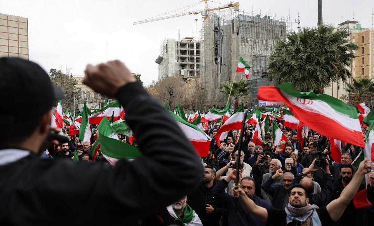 Под таким лозунгом в Тегеране проходит митинг в поддержку местных властей и с осуждением атак США.Подписаться на RT: ТГ | Зеркало | MAX