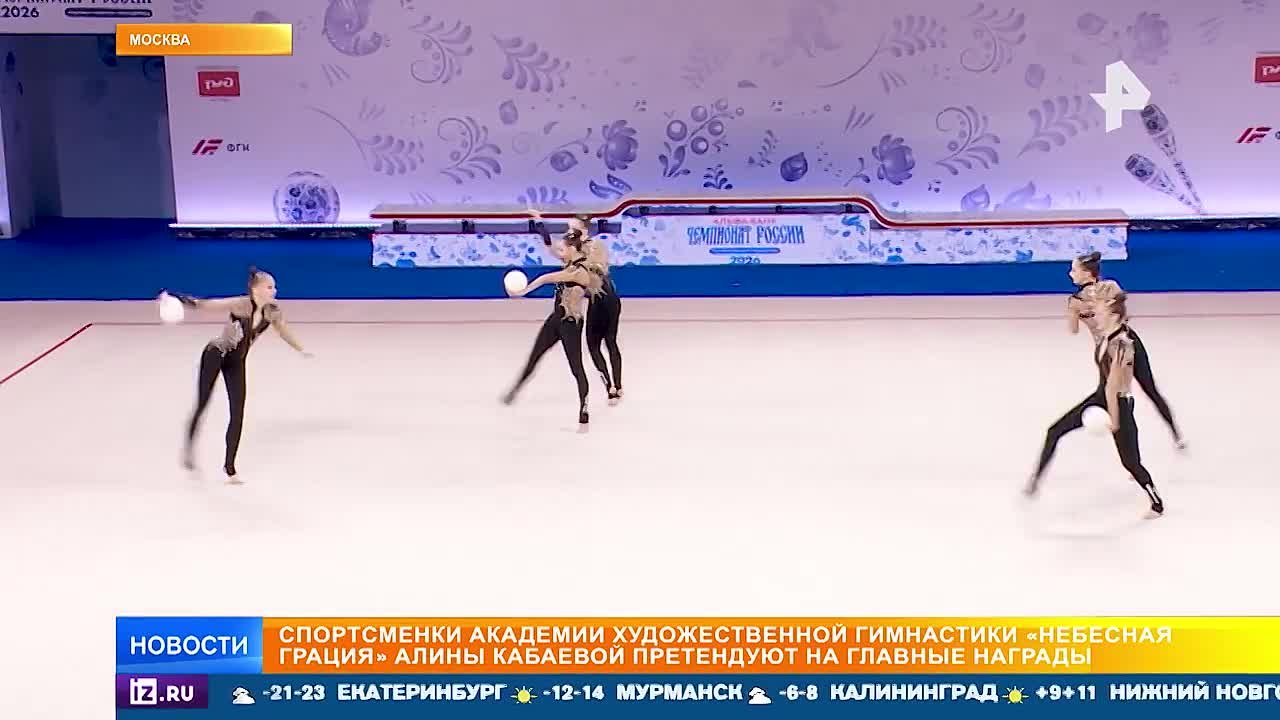 Чемпионат России по художественной гимнастике стартовал в Москве. Больше 500 лучших спортсменок соревнуются в групповых и личных упражнениях. Среди фавориток — воспитанницы Академии художественной гимнастики "Небесная грация".
