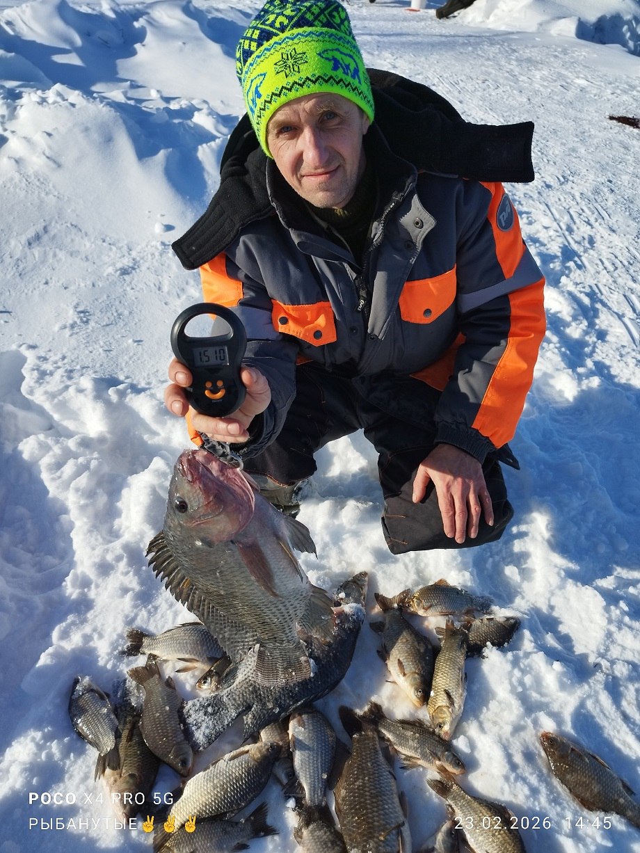 На озере в Удомле рыбак наловил карасей и крупных тиляпий.