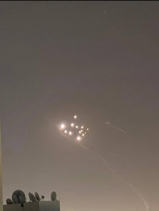 На кадрах — предварительно, момент удара. Несколько ярких огней загораются в небе и летят по направлению к базе. Отмечается, что это одна из важнейших баз для ВМС США в Персидском заливе.