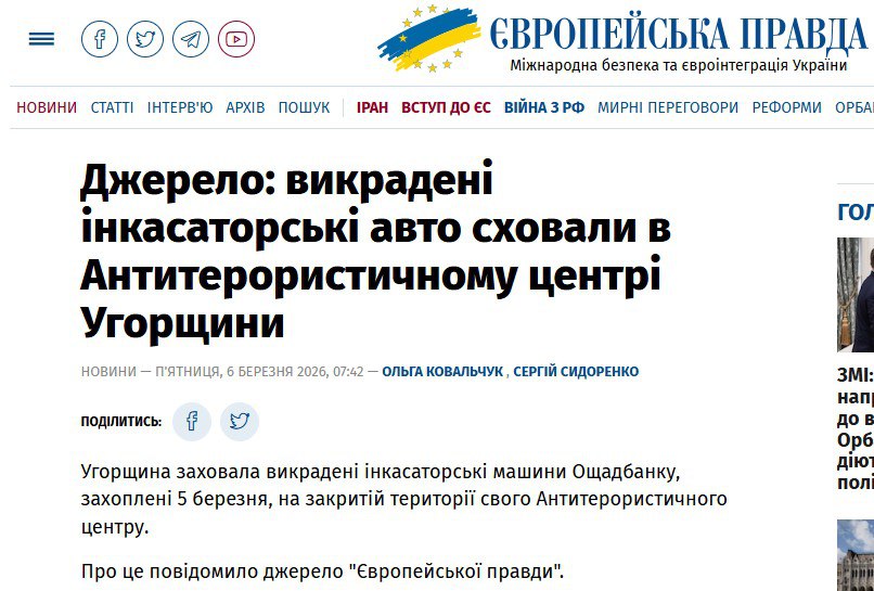 ‘Инкассаторские автомобили находятся на территории Антитеррористического центра Венгрии’ – украинские СМИ.