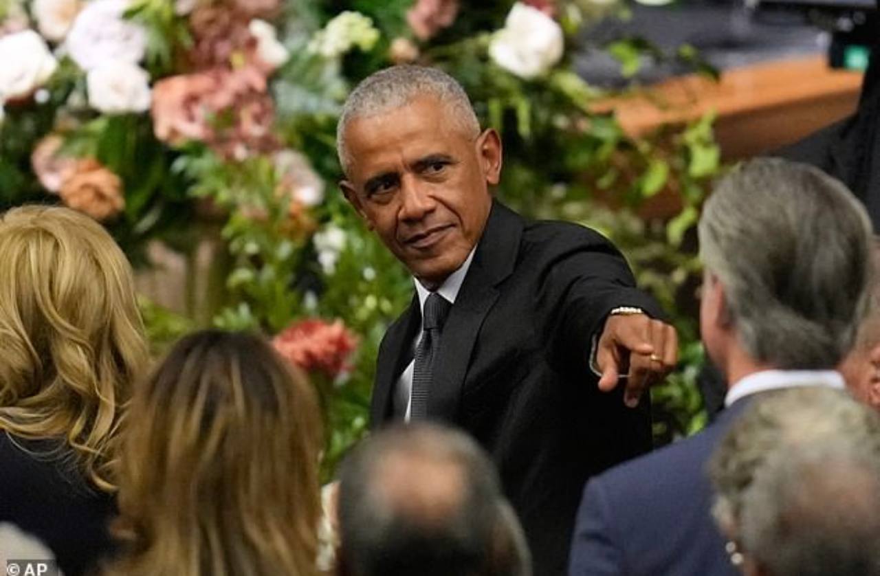 Барак Обама указал на преемника. 44-й президент США вызвал ажиотаж, когда он повернулся и указал на Гэвина Ньюсома на похоронах героя-демократа преподобного Джесси Джексона в Чикаго в пятницу.