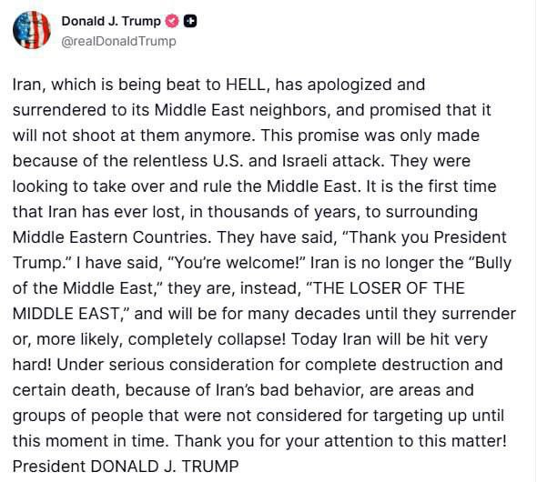 Иран больше не "хулиган Ближнего Востока", теперь он лузер Ближнего Востока — Трамп