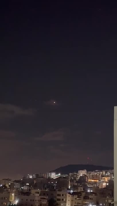 По данным Quds, часть ракет пробивает защиту системы ПВО "Железный купол". На видео — процесс перехвата ракет прямо над городом.