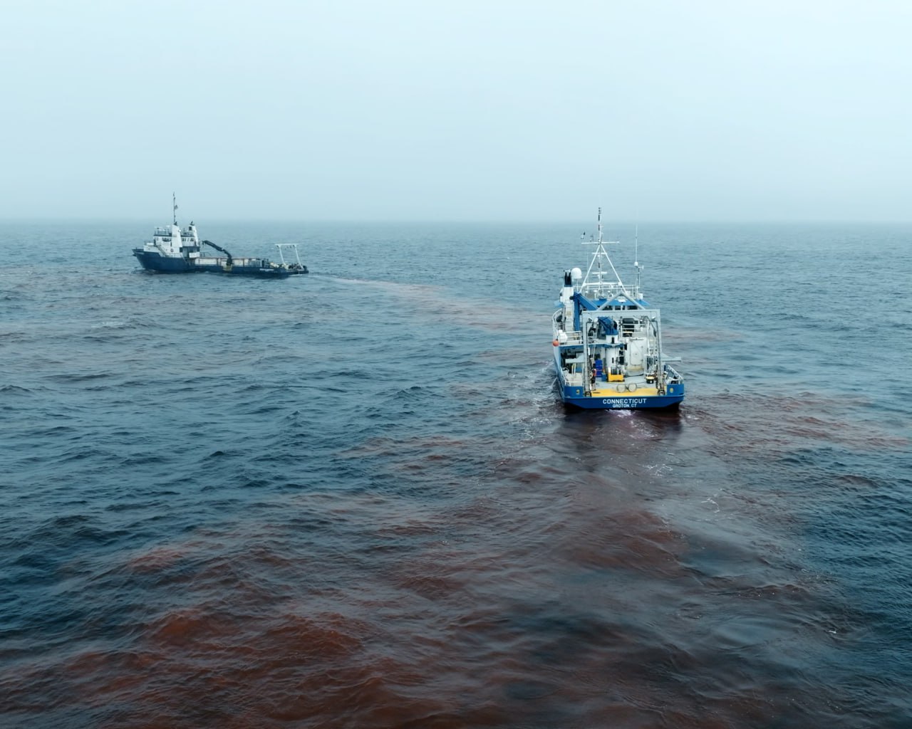 Американские учёные четыре дня выливали в океан щелочной раствор красного цвета — хотят так замедлить глобальное потепление, пишет Daily Mail.
