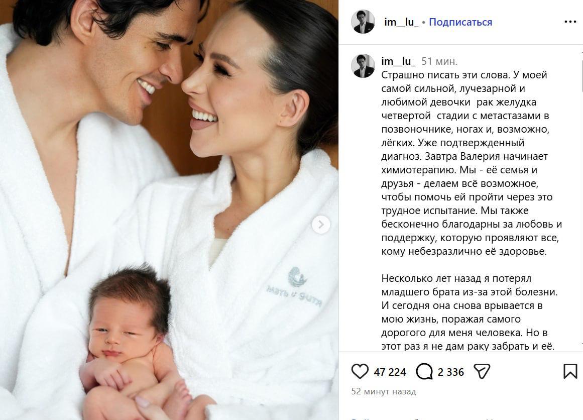 Об этом сообщил её парень Луис Сквиччиарини. По его словам, завтра Валерия Чекалина (настоящее имя Лерчек) начинает химиотерапию.