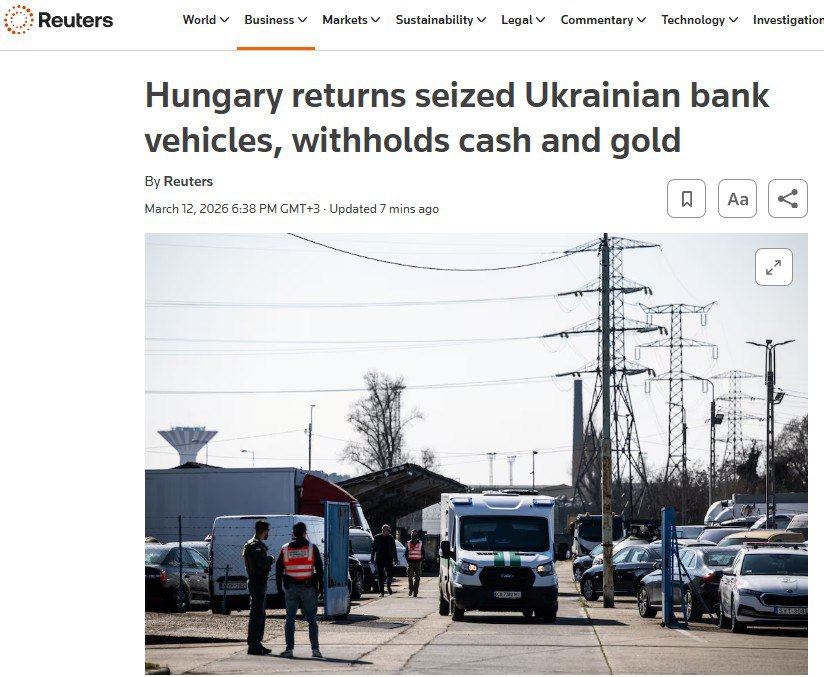 ‘Венгрия вернула Украине конфискованные машины ‘Ощадбанка’. Наличные и золото остались в Венгрии’ - Reuters