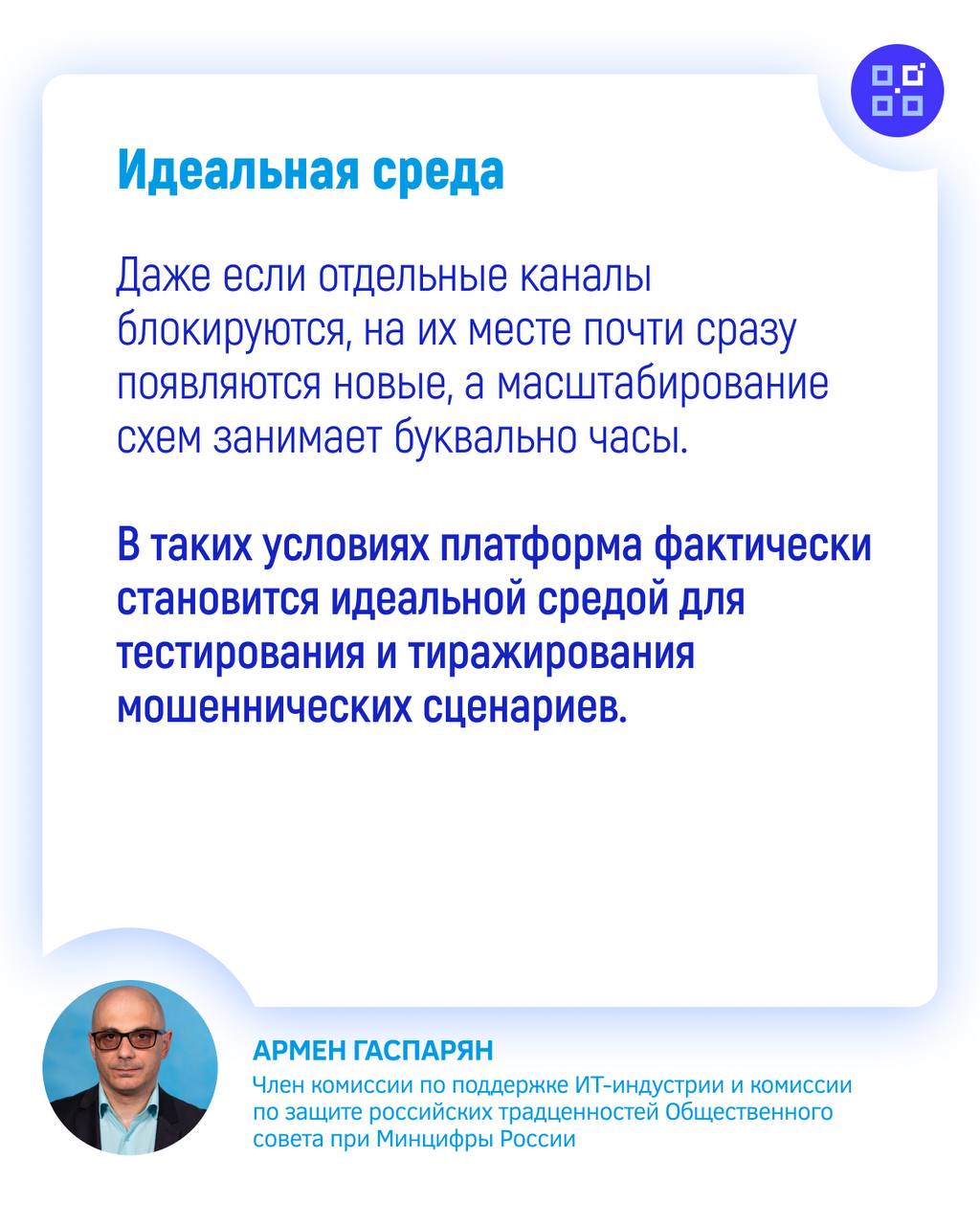 Комментирует член комиссии по поддержке ИТ-индустрии и комиссии по защите традценностей Общественного совета при Минцифры России Армен Гаспарян