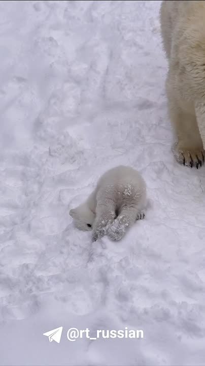 Белый медвежонок вышел на первую прогулку в зоопарке Новосибирска.