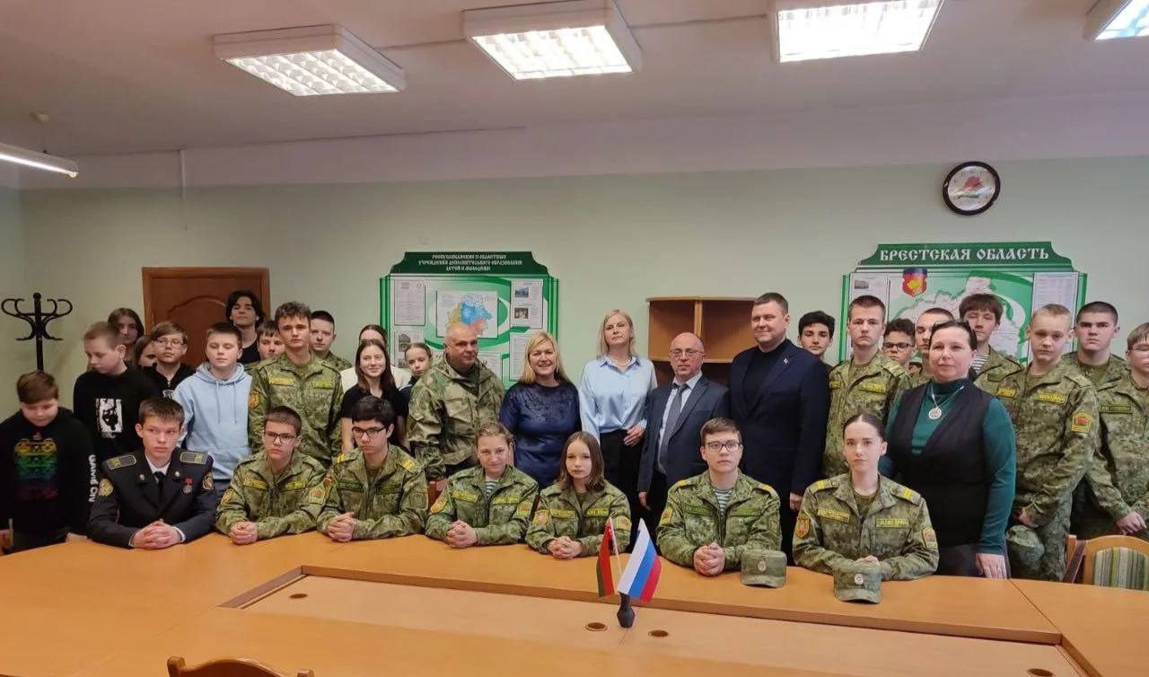Елена Родионова рассказала, что на встрече в центре молодежного творчества города-героя Бреста делегация увидела уникальных ребят — актив детских объединений и патриотических клубов, одетых в пограничную форму: