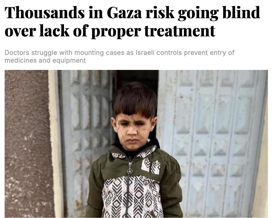 Тысячи жителей сектора Газа с заболеванием глаз могут ослепнуть из-за нехватки лекарств и медоборудования.