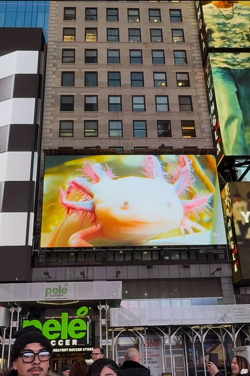 На Таймс-сквер транслируют ролики c российским аксолотлем.