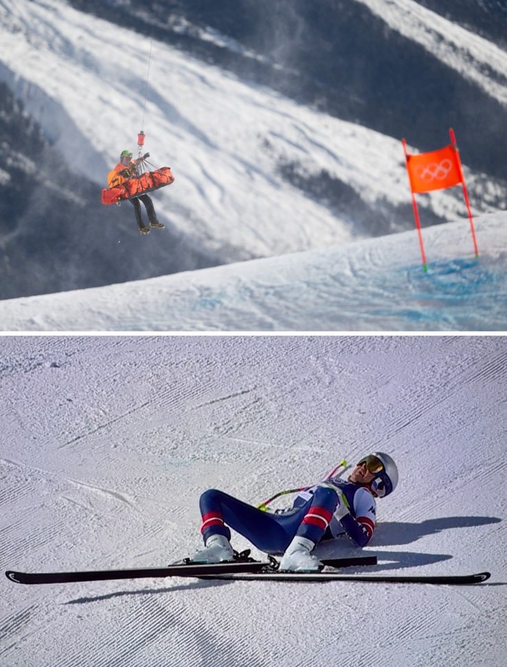 Во время скоростного спуска Линдси Вонн зацепилась за флаг, и её закрутило. Спортсменку эвакуировали вертолётом, ей сделали операцию.