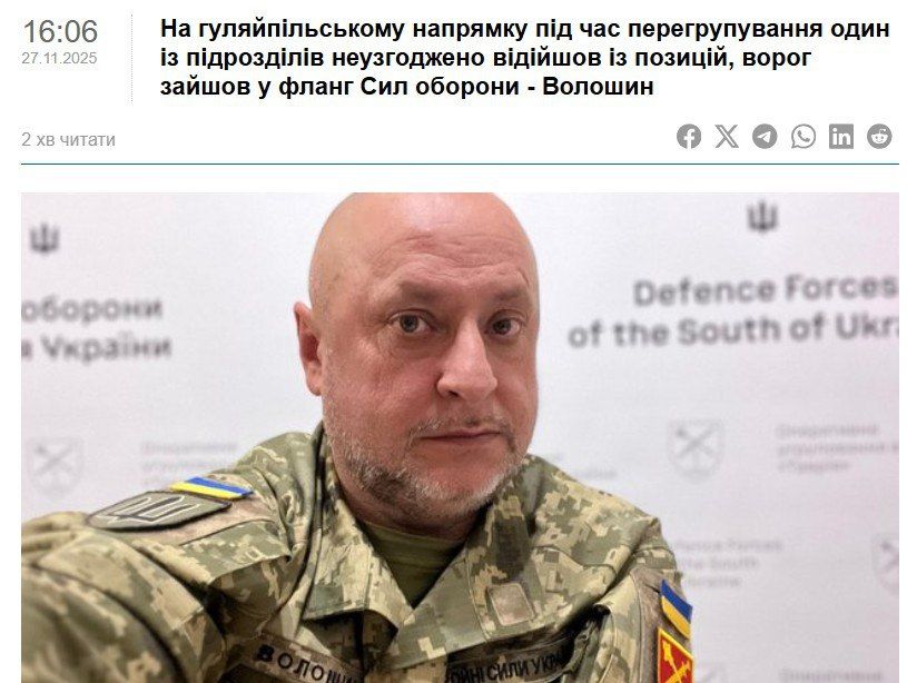 Спасают свои жизни.‘Армия России вплотную подошла к Гуляйполю, потому что подразделение ВСУ несогласованно отступило, сбежало с позиций’ – спикер ВСУ Волошин.Скабеева в Max | Скабеева в Telegram